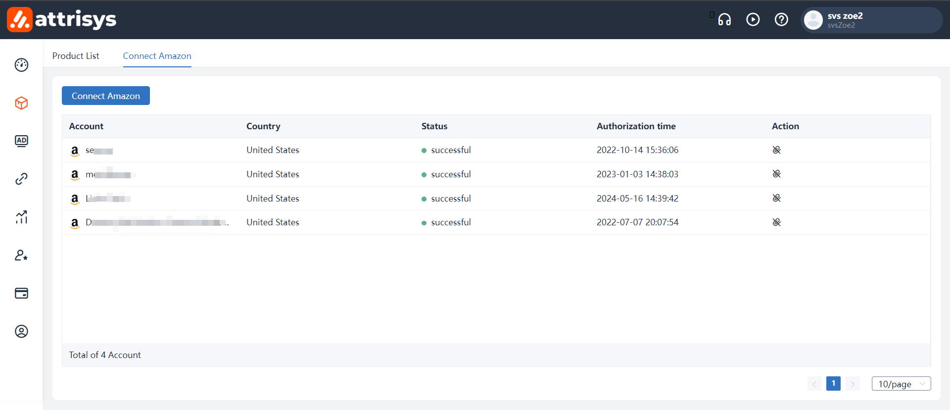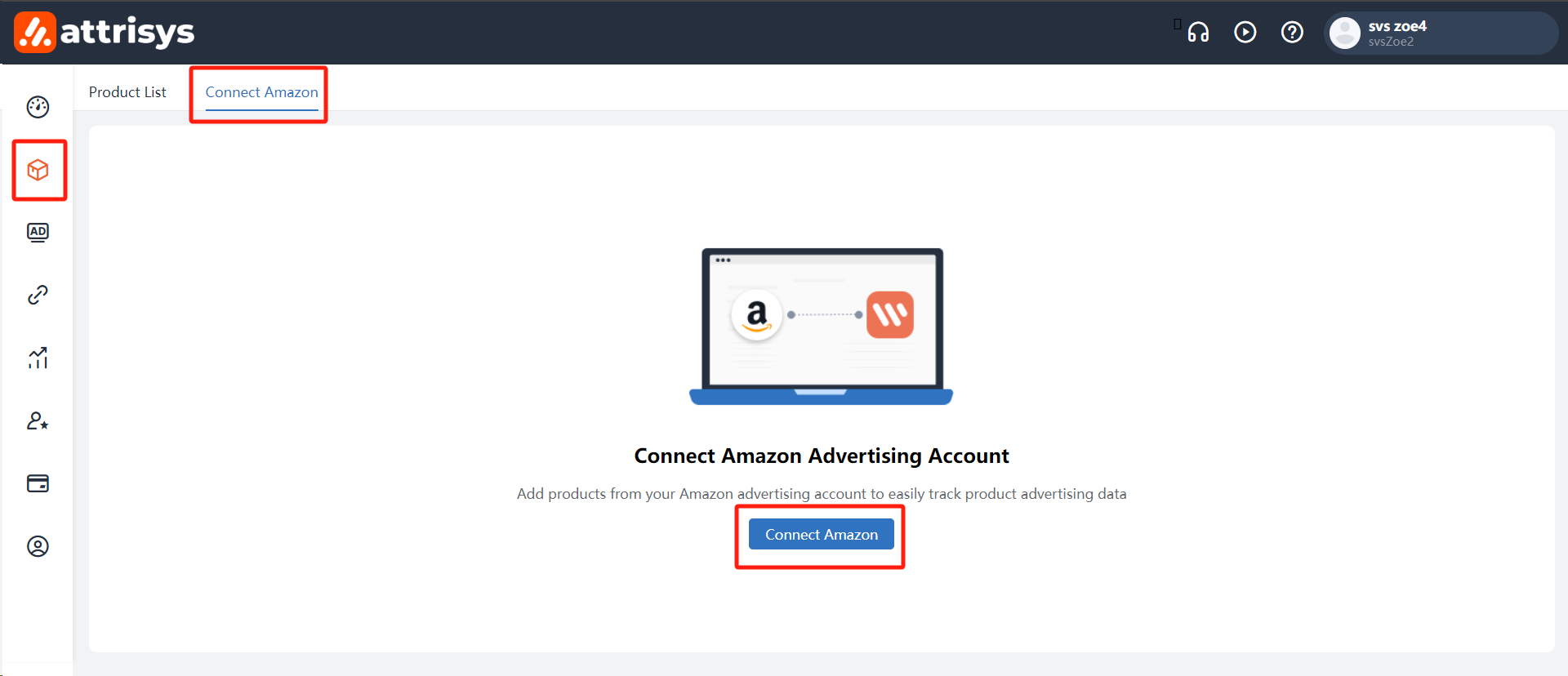 To link your Amazon Attribution, from your Attrisys Product Library, select the "Connect Amazon" tab, and click "Connect Amazon".